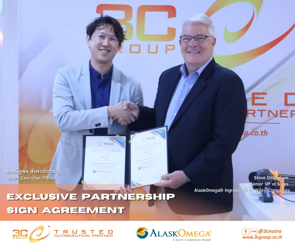 Coshocton, Ohio — Wiley Companies, the maker of AlaskOmega®, announced the signing of an exclusive partnership agreement with 3C Group, a leading innovation and formulation partner in Thailand’s nutraceutical market.